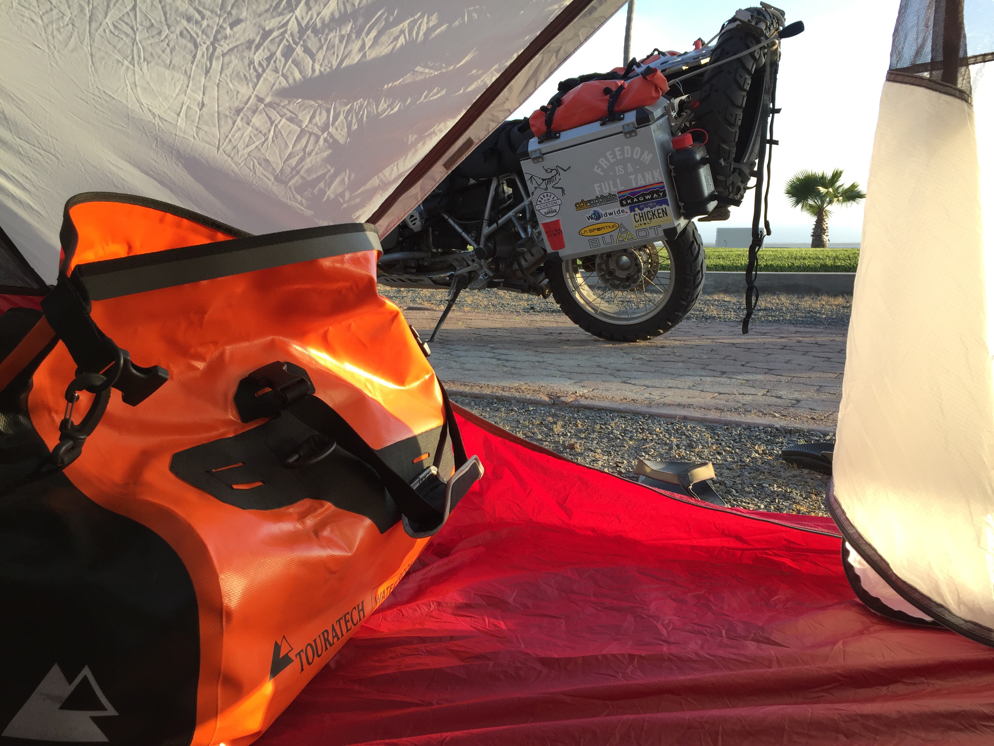Todays lesson: Make sure you know what paperwork you need in a country before you leave the border… I was planning on getting my tourist visa and temporary vehicle import permit in Ensenada yesterday. I got my tourist visa no problem, and the staff at imigracion said to get the tvip in La Paz before I cross the ferry to mainland. Long story short, i was in Elrosario when @zoerem said tvip is not doable in La Paz prior to ferry crossing. I called La Paz Aduana office and numbers didnt work, surprise. I made the call to ride back to Tijuana to make sure i get my tvip before a real inconevience happens. 700 km blunder… (Tijuana aduana staff says lapaz does currently do tvip’s, dough…) Silver lining is, it’s not snowing and heated gear is in the panniers