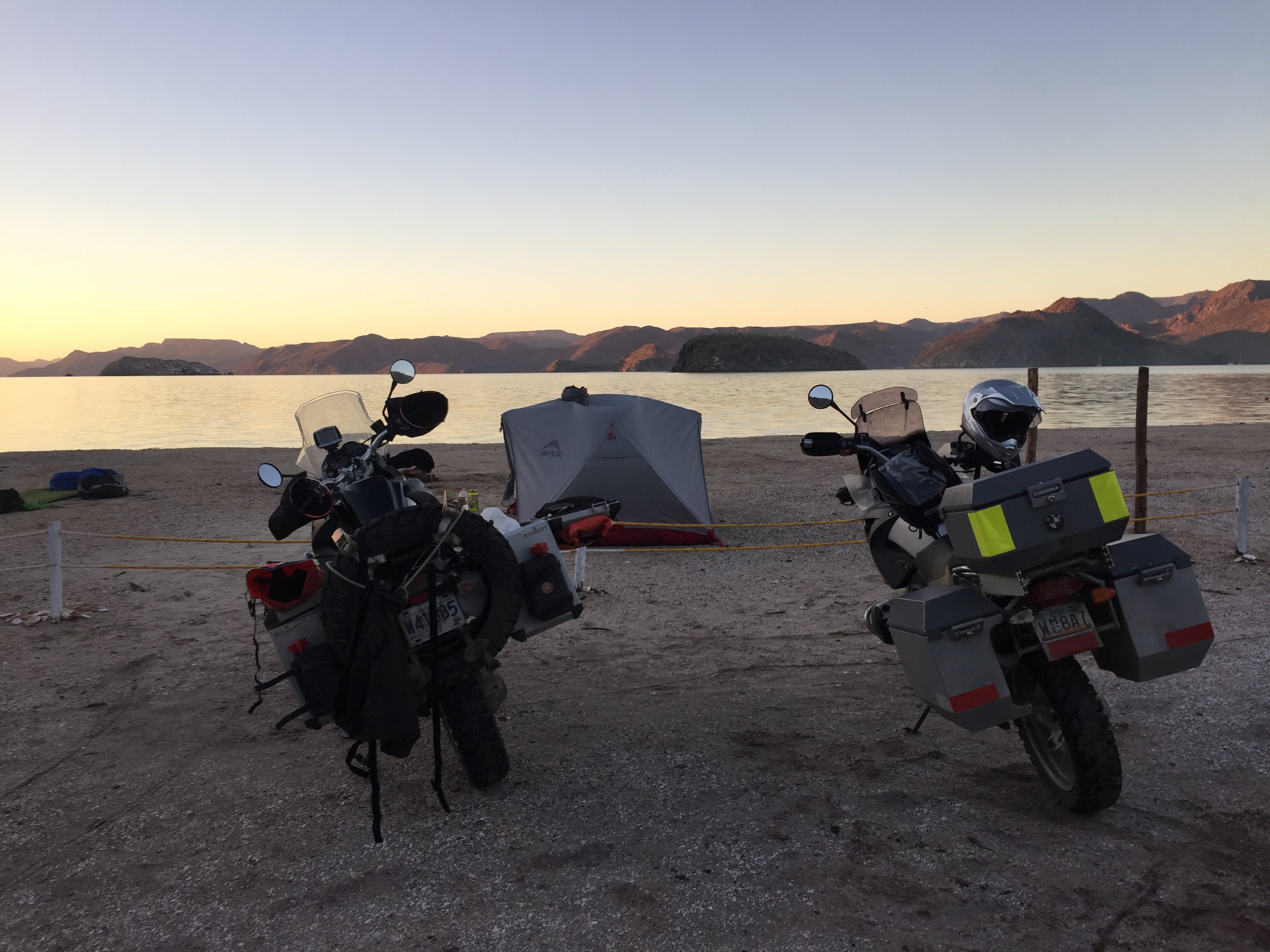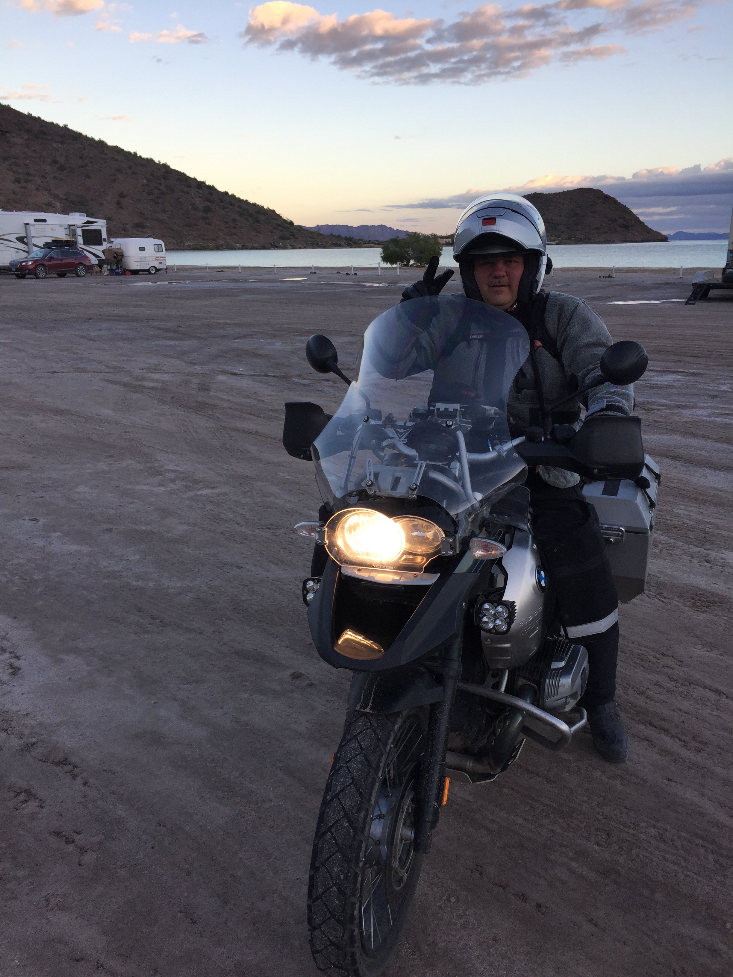 Yesterday I stayed at Santispac Beach just south of Mulege. Met some seriously rad people. 4 BMW’s were calling out to me to stop and bullshit with the riders 😉 Tony had to have a Margerita and I couldn’t let him drink alone 😉 Officially my first drunk beach motorcycle ride, thanks Tony !