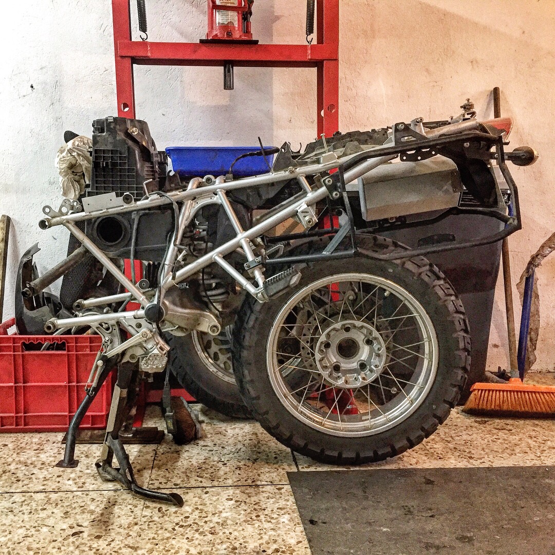 2 weeks ago I arrived in Quito and had plans to stay two nights and continue south. On the morning I went to leave with Steve, I noticed a leak on the bottom/ rear of my engine. Long story short of diagnosing, turns out I had 1 of 3 seals between my transmission and engine that could be blown. From going to BMW Quito and speaking with friends, this was going to be a big job to undertake and I needed help, seals, information, and a clean/ organized shop to tear Donkey literally in half… From speaking with Michnus and Elsebie from Pikipikioverland.com , they recommended Michele and Angel from Motohell Suzuki shop in Quito. Right away from meeting them they were researching the job on the internet and making calls for seals to figure out how to get them from Colombia to Ecuador. All in all, I waited a week and a half for seals to arrive from Bogota, and a solid day and a half of the GS on the workbench being ripped apart, inspected, cleaned, swapping the balance shaft seal, and reassembled. Angel and I tag teamed the shit out of this daunting job and we barely stressed. I speak a bit of spanish and he a bit of english. Stellar team and a big job… If you need a shop to work on your bike in Ecuador, these are the people you can trust with your baby. Not many shops allow the customer to be in the back to work with the tech, as an overlander this is a must for me to see and do the job…